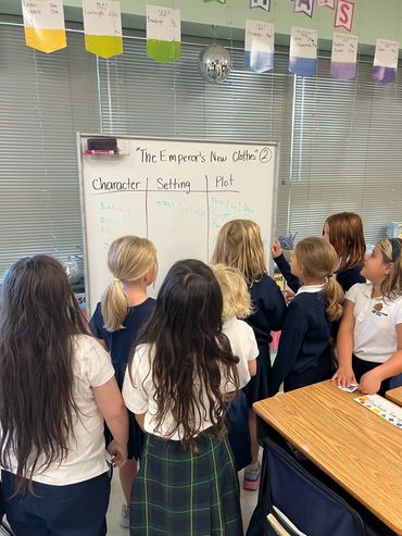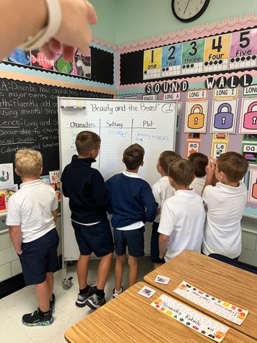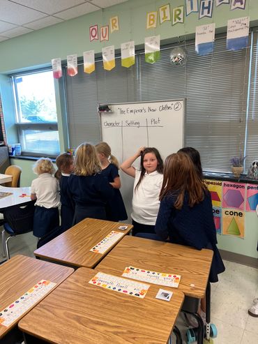 Here are some photos of an activity we did in ELA today. We are working on characters, setting, and plot. We read 3 fairytale stories the past week and this week.The students worked together to determine these aspects of the fairytales.